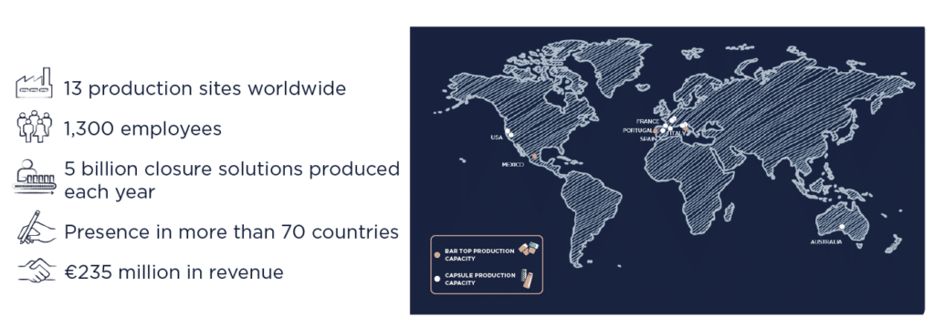 At the same time, the group maintains an active presence across all its historical markets: still wines, beer, water, oils and vinegars; leveraging the complementarity of its offer.